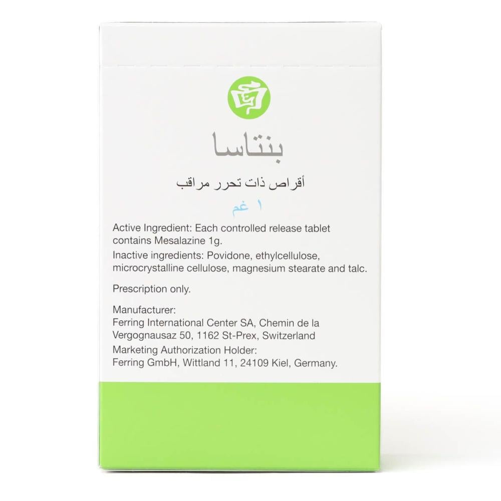 - تتوافر أقراص بنتاسا 1 g طويلة المفعول في عبوات تحتوي على 60.